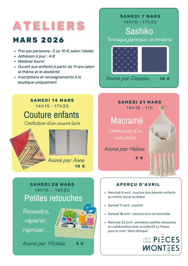 Pour profiter des ateliers l’adhésion annuelle de 4 € est obligatoire (en savoir plus).